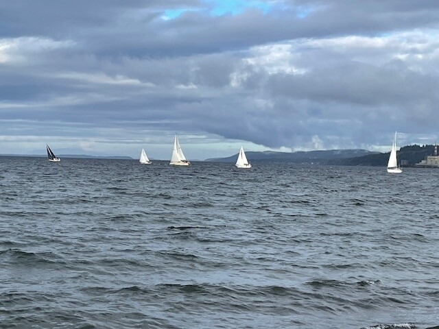 It was a challenging day with strong choppy North west winds at 10 - 20 knots. Six boats entered the race and everyone finished. Our course was a beat from Willingdon to the mill followed by a close reach to our virtual mid-channel mark and then downwind to Grief Point with a close reach to the finish at Willingdon, a distance of 10 nautical miles. It was a fast race as we covered the 10 nautical miles in less time than last weeks 6 mile course.